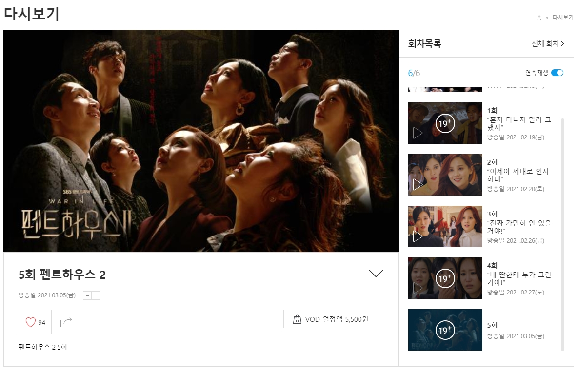 | 펜트하우스2 6회 재방송 다시보기 (ft. SBS 방송편성표) (0) | 2021.03.06 |