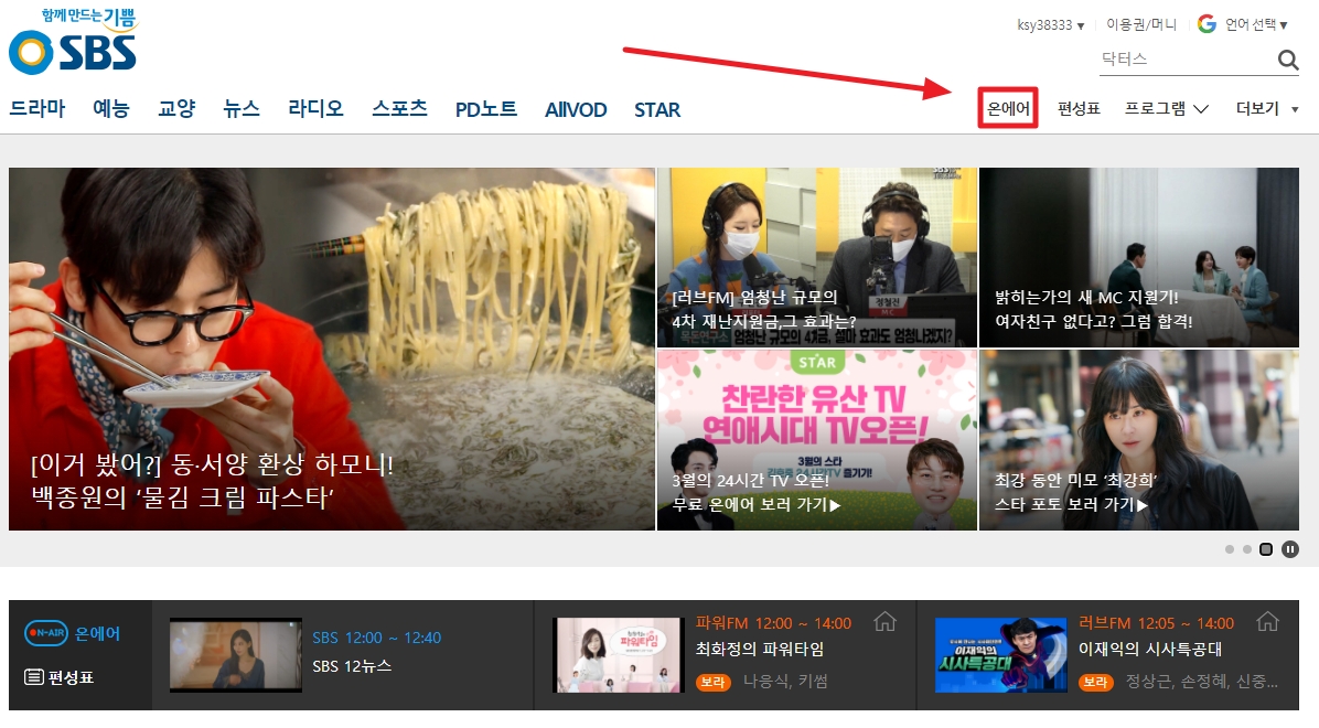 SBS 홈페이지 온에어 바로가기 (SBS.CO.KR)