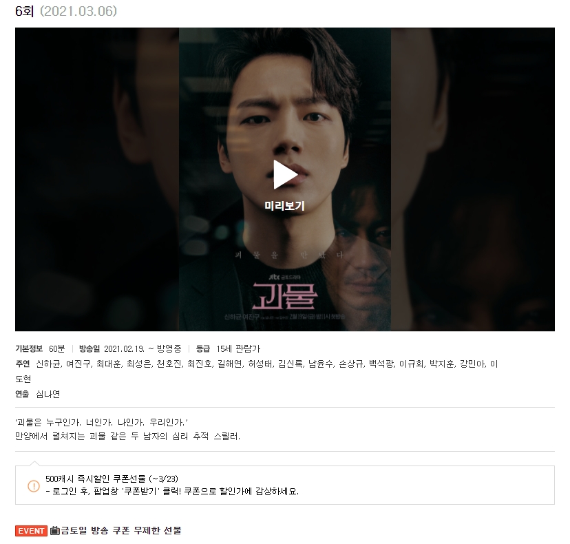2) 네이버 시리즈온 괴물 재방송 다시보기