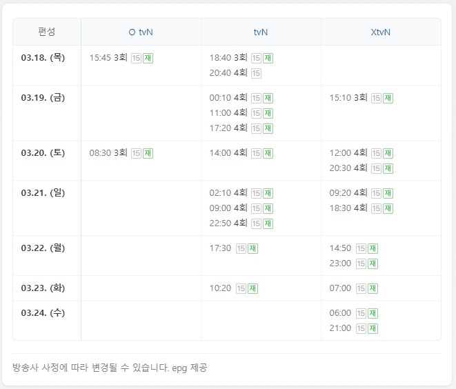 - TVN 방송편성표