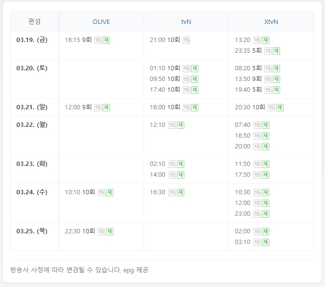 | 어쩌다 사장 4회 재방송 다시보기 (ft. tvN 방송편성표) (0) | 2021.03.18 |