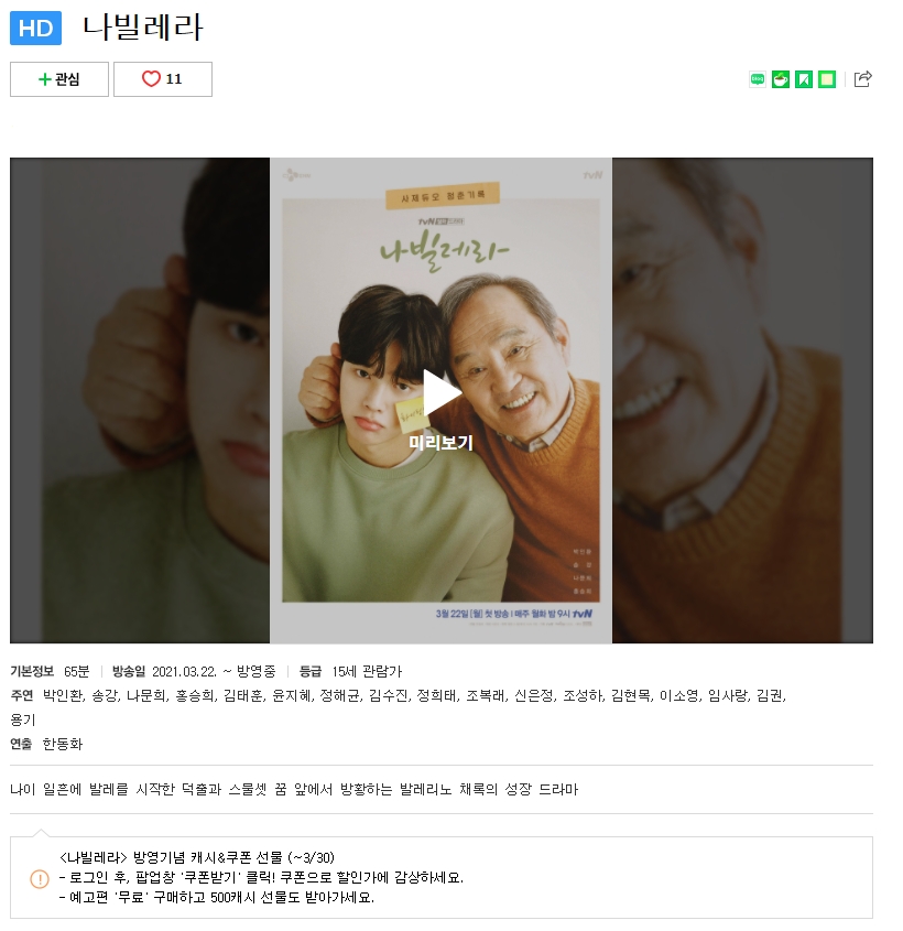 2) 네이버 시리즈온 나빌레라 재방송 다시보기