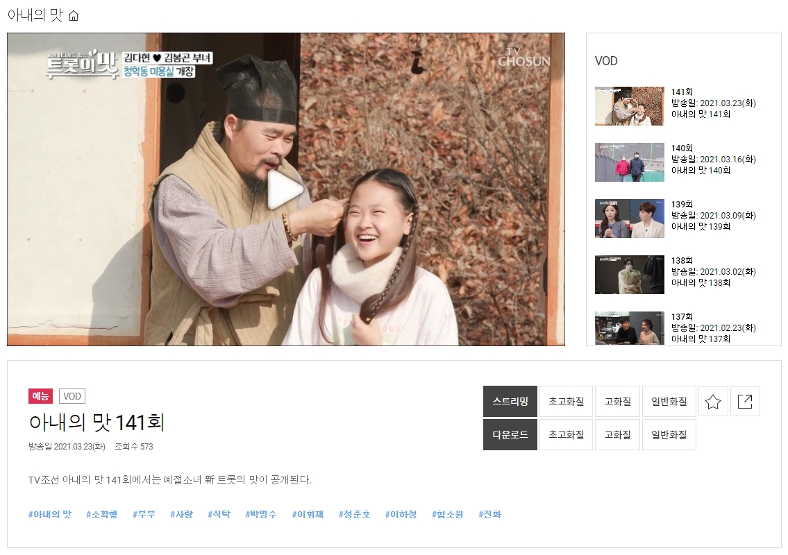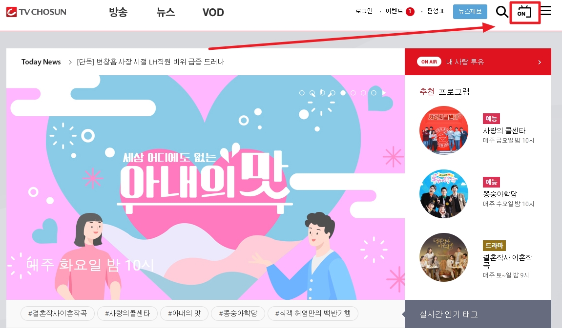 티비조선 홈페이지 아내의 맛 다시보기 (tvchosun.com)