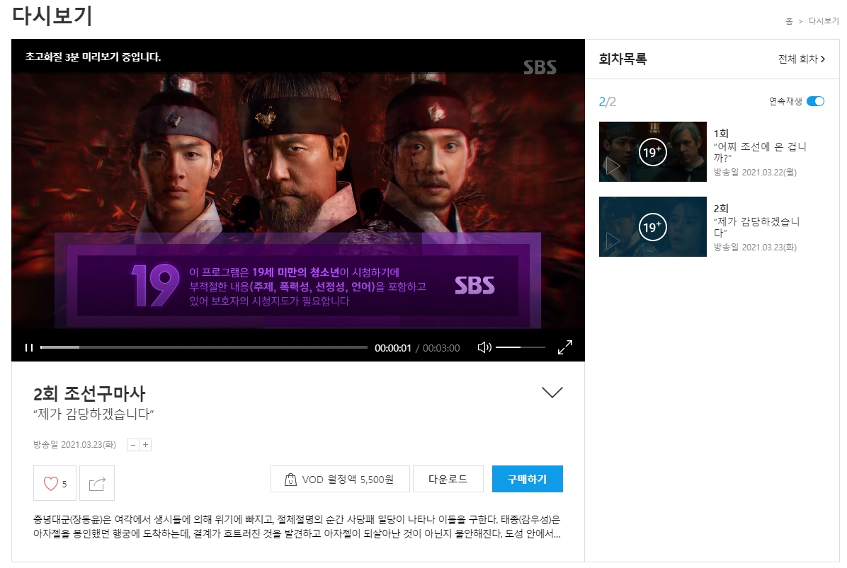 SBS 홈페이지 조선구마사 다시보기 (SBS.CO.KR)