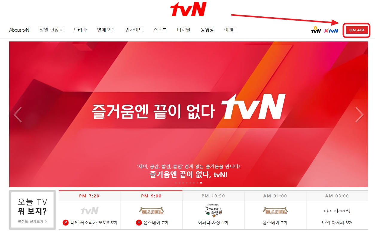 TVN TVING 온에어 서비스를 이용하시면 윤스테이 재방송 다시보기 무료로 가능합니다. 재방송 시간에 맞춰서 온에어로 접속하시면 되는데요, 결제가 부담스러우시면 위 방법을 이용 하시면 됩니다.