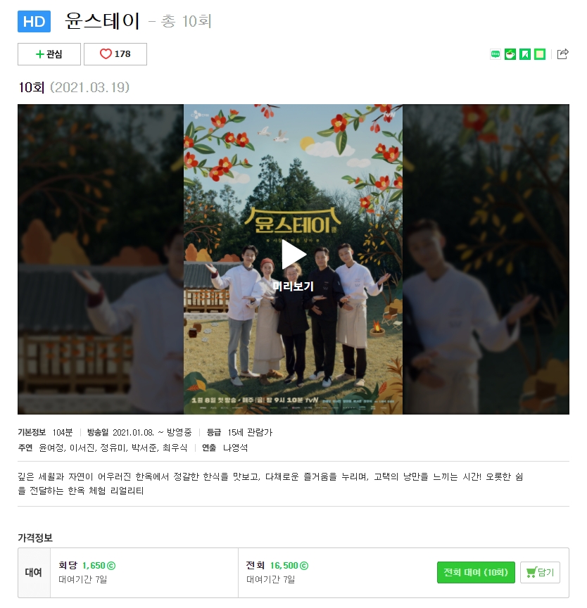 네이버 시리즈온 윤스테이 다시보기 (NAVER.COM)