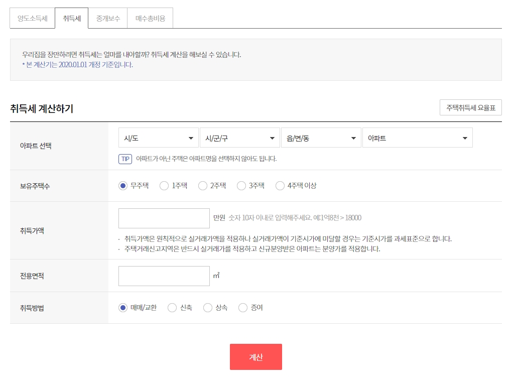 아파트취등록세 계산 은 부동산114 홈페이지에서 쉽게 계산 할 수 있습니다.