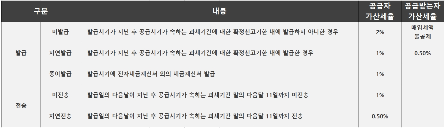 공급시기별로 발급기한 및 가산세를 정리하면 아래와 같습니다.