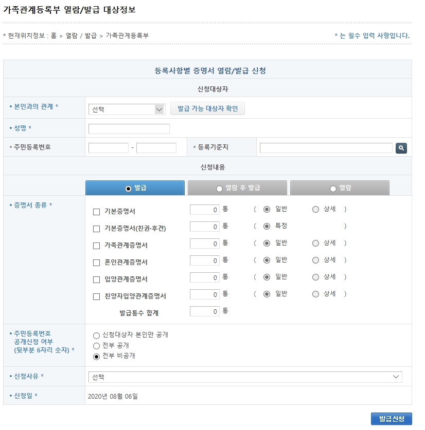 가족관계증명서 인터넷 발급 방법