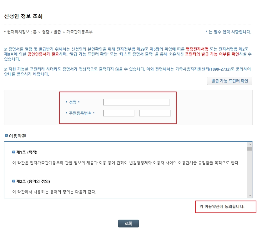 ※ 가족관계증명서 인터넷 발급 하기 전 공인인증서와 출력이 가능한 프린터가 필요합니다.
