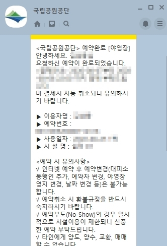 무더운 여름 전국국립공원 야영장에서 기분좋게 보내시길 바라겠습니다.