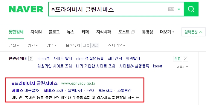 포털 검색창에 e프라이버시 클린서비스 를 검색하거나 홈페이지 e프라이버시 클린서비스 홈페이지에 접속