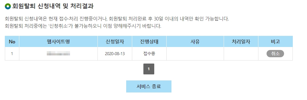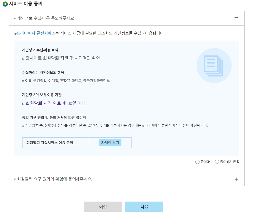 대부분의 사이트들을 직접 탈퇴해야 하는데, 조금 아쉬운 부분입니다.