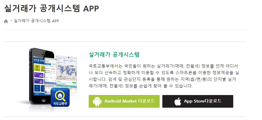 그리고 화면 아래보시면 실거래가 공개시스템 모바일 app 도 지원하고 있으니