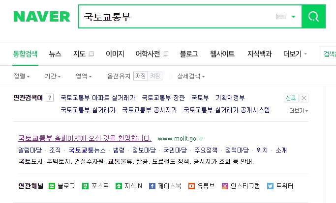 포털검색창에 국토교통부를 검색하거나 아래 링크로 바로접속 하시면 됩니다.