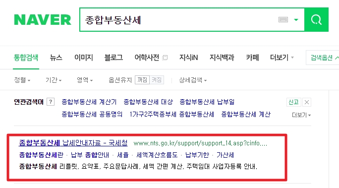 ■ 먼저 포털검색창에 종합부동산세라고 검색하시거나 아래 링크를 통해서 들어가시면 됩니다.